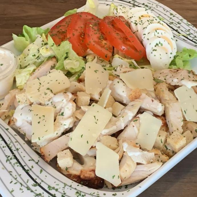 Poulet Nature, Salade, Tomates, œuf, Croûtons, Parmesan,