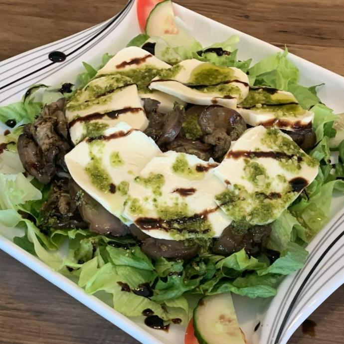Salade, Tomates, Mozza,Trio de Légumes , Pesto, crème Balsamique