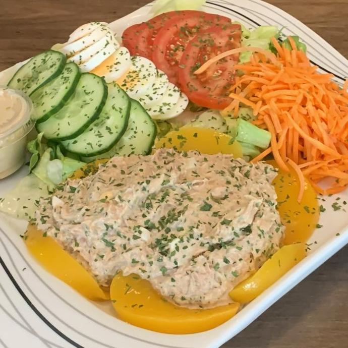 Thon Mayonnaise, Pêche, Salade, Tomates, Concombre, Carotte, Maïs, épices, sauce Mayonnaise